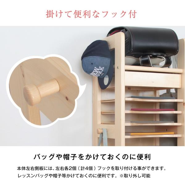 レッスンバッグや帽子等かけておくのに便利です。※取り外し可能