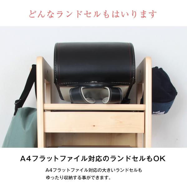 A4フラットファイル対応の大きいランドセルもゆったり収納する事ができます。