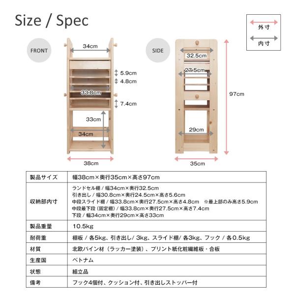 色合い・風合いの変化を楽しむ天然木シリーズのランドセルラックです。