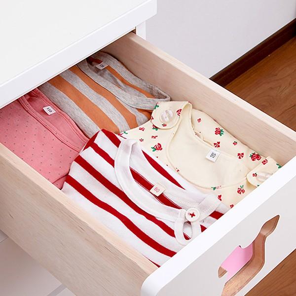 引き出しのマークで、パンツ、靴下、シャツ、ズボン…どこに収納しているのか視覚的に分かるチェストです。