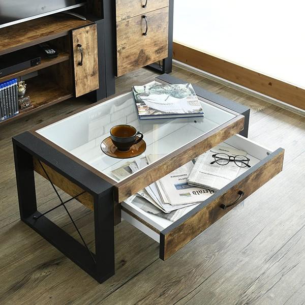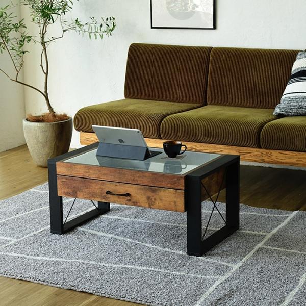 ガラステーブル ビンテージ風 ヴィンテージ ヴィンテージ風 ビンテージ アメリカンヴィンテージ アンティーク インダストリアル 木製 木目 木目調 おしゃれ 収納 お洒落 黒 ブラック ダークブラウン ブラウン 茶色 茶 脚 アイアン ブラックアイアン スチール 鉄 木 ソファ 二人暮らし ひとり暮らし ノートパソコン 四角 ガラス天板 ガラストップ 雑貨 重厚感 勉強 パソコン 引き出し付 ひきだし リビング 見せる収納 木材 pc コレクション 強化ガラス天板 ラック リモコン ディスプレイ 雑誌