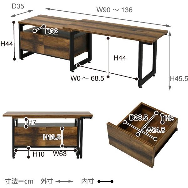 外寸:幅90~136×奥行35×高さ45.5cm