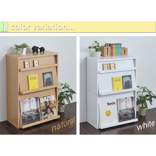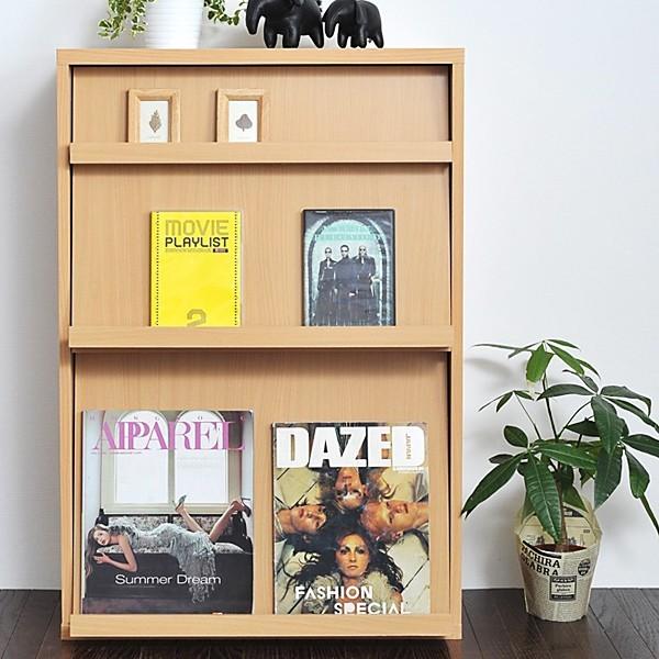 フラップ扉部分は前面の奥行きが約2.5cmあり、大判の雑誌などもディスプレイできるワイドな設計にしています。
