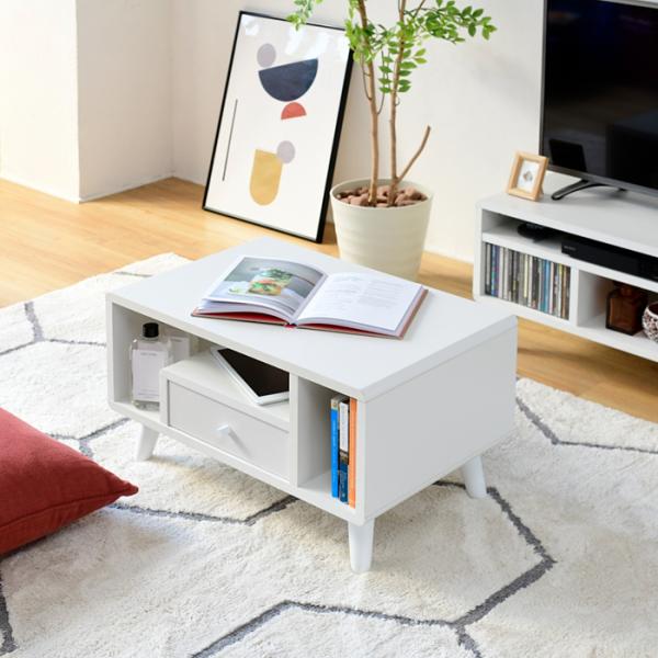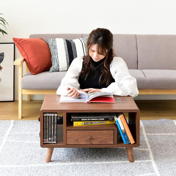 リビングテーブル センターテーブル ローテーブル オープンラック 引き出し コンパクト 省スペース 小さい ミニ かわいい おしゃれ 収納 棚 木目 北欧 1人暮らし 【納期A】【jpk-fap-0013】