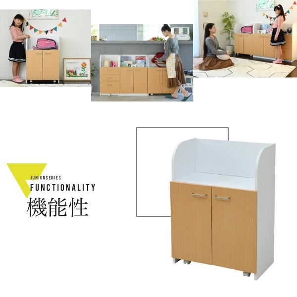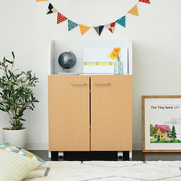 遊んだおもちゃはボックスにお片付けして、扉内に収納すればスッキリ。