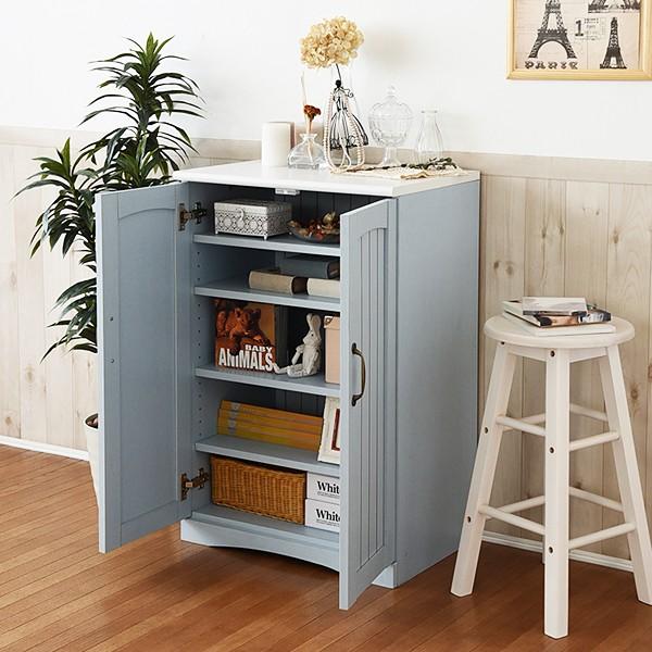 ブルーとホワイトの色使いが可愛い!ツーバイカラーのフレンチカントリーシリーズのキャビネットです。