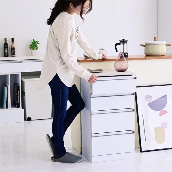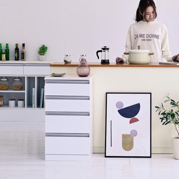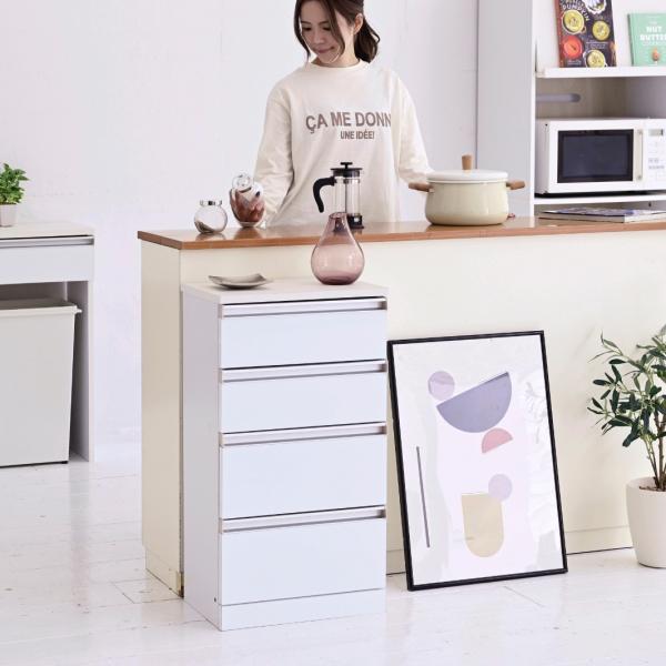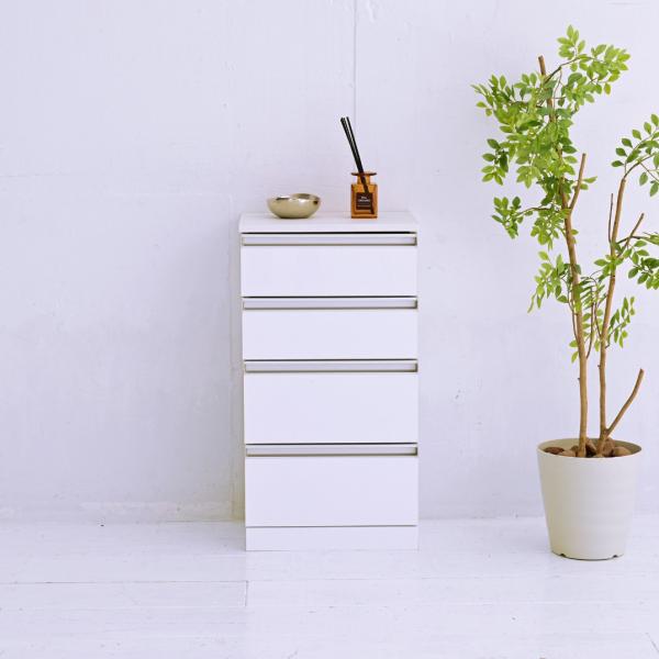4段チェスト リビングチェスト 白 キッチンチェスト カウンター下収納 コンパクト チェスト サイドチェスト 引き出し 収納 木製 スリム ホワイト 薄型 鏡面