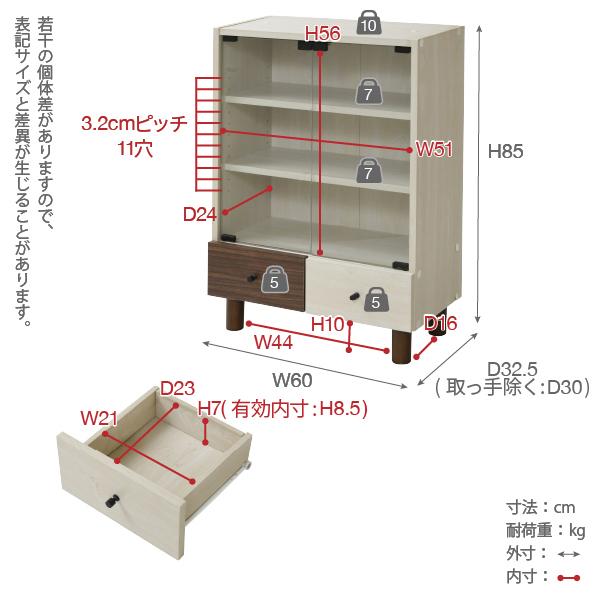 可動棚:幅56×奥行23×厚み1.8cm(3.2cmピッチ11穴)