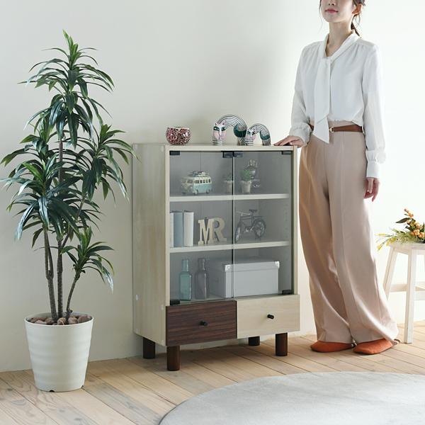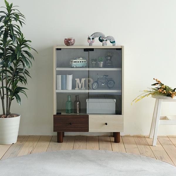チェスト 棚 収納 おしゃれ カントリー 北欧 ガラス扉 白木目 かわいい レトロ 小さい リビング収納 収納棚 【納期A】【jpk-fmb-0001】