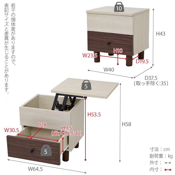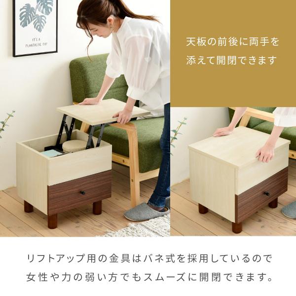 リフティングテーブル サイドテーブル ソファサイド ベッドサイド リビング 寝室 ローテーブル 引き出し ミニテーブル 収納 木目 カフェ風 かわいい ツートーン 【納期A】【jpk-fmb-0007】
