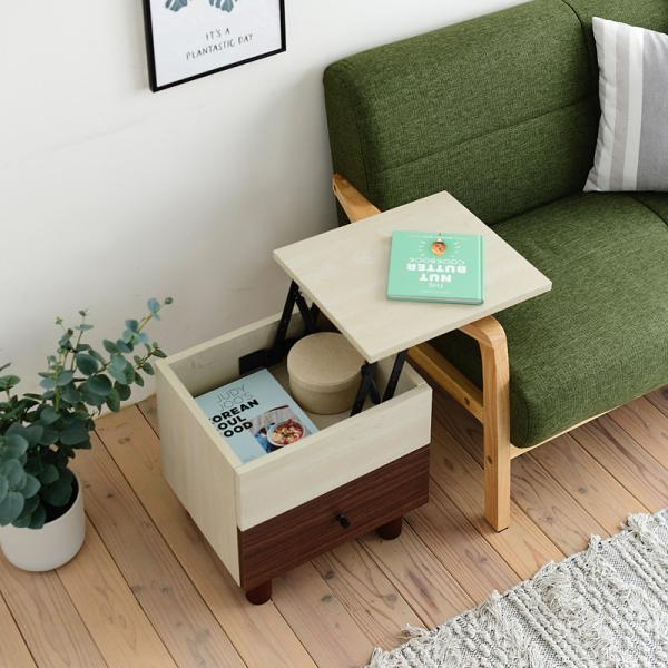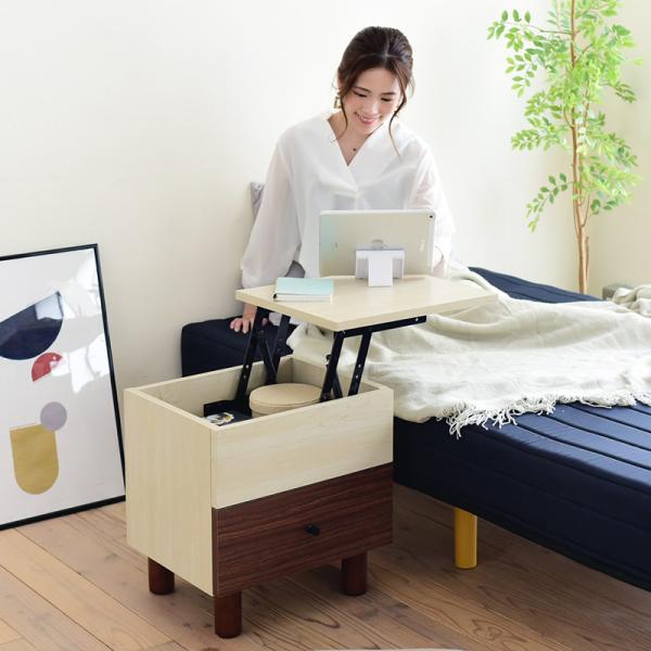 リフティングテーブル お洒落 かわいい 収納付き スリム ソファー 引き出し付き 低め 低い 北欧 モダン リビング ロータイプ ベッドサイドテーブル 小型 サイド 木製テーブル 北欧風 寝室 シンプル ナイトテーブル ラック リモコン収納 雑誌 雑貨 コーヒーテーブル ソファー横 サイドチェスト ソファサイド ミニテーブル 昇降式テーブル 一人暮らし