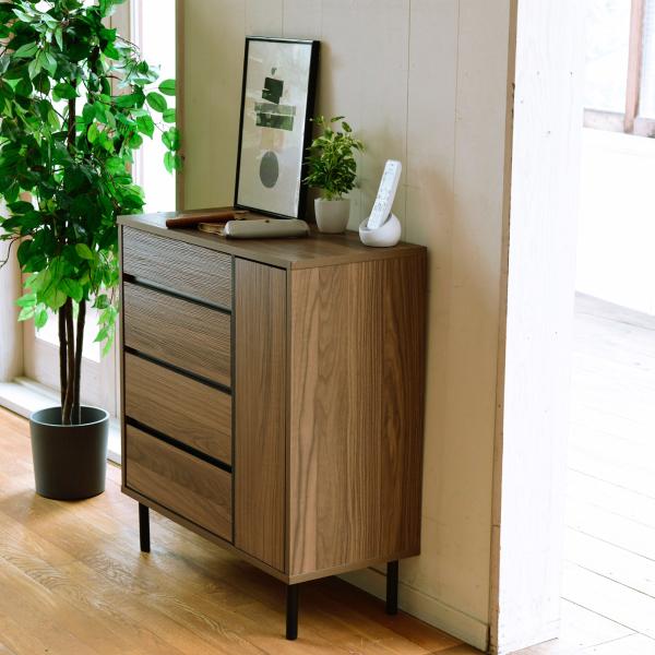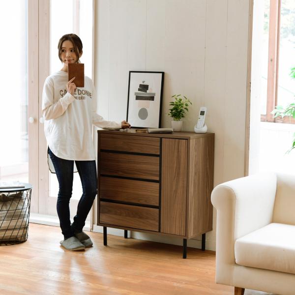 リビングボード 北欧 チェスト ワイドチェスト 4段 キャビネット 大容量 整理 服収納 引き出し タンス 黒 木製 洋服 大 容量 脚付き 幅77.5 リビング 扉 高さ90 リビングチェスト 収納 洋服収納 小物 服 キャビネット 80 ブラウン 四段 ワイド 80cm幅 間仕切り おしゃれ ブラウン ブラック