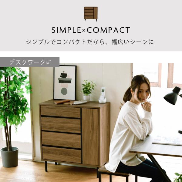 4段のチェストに扉収納がついたワイドチェストは、シンプルだからこそ使いやすいアイテムです。