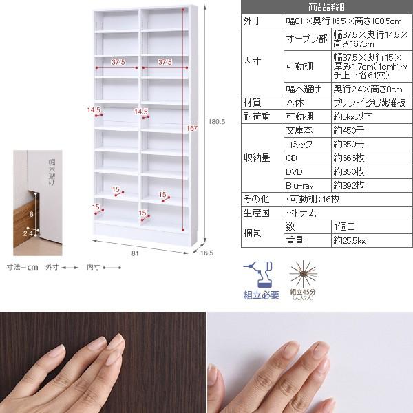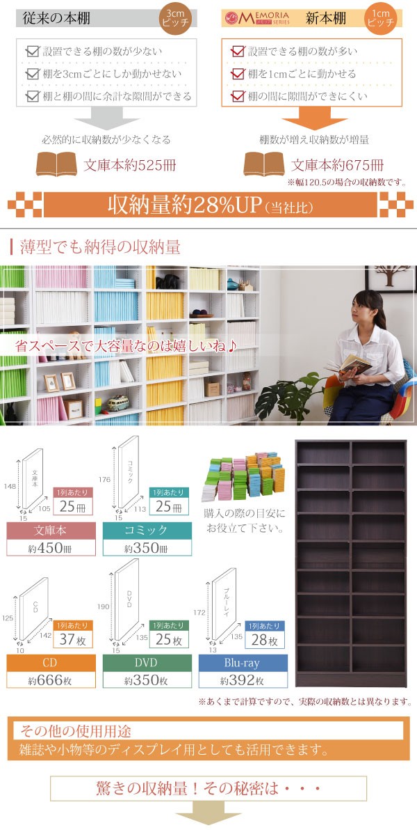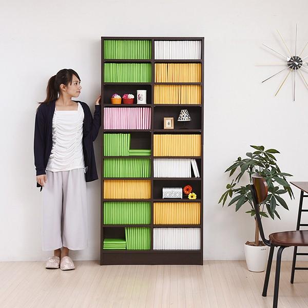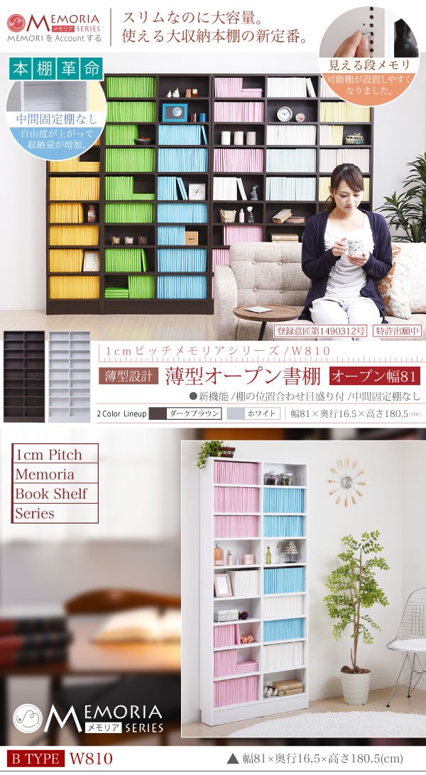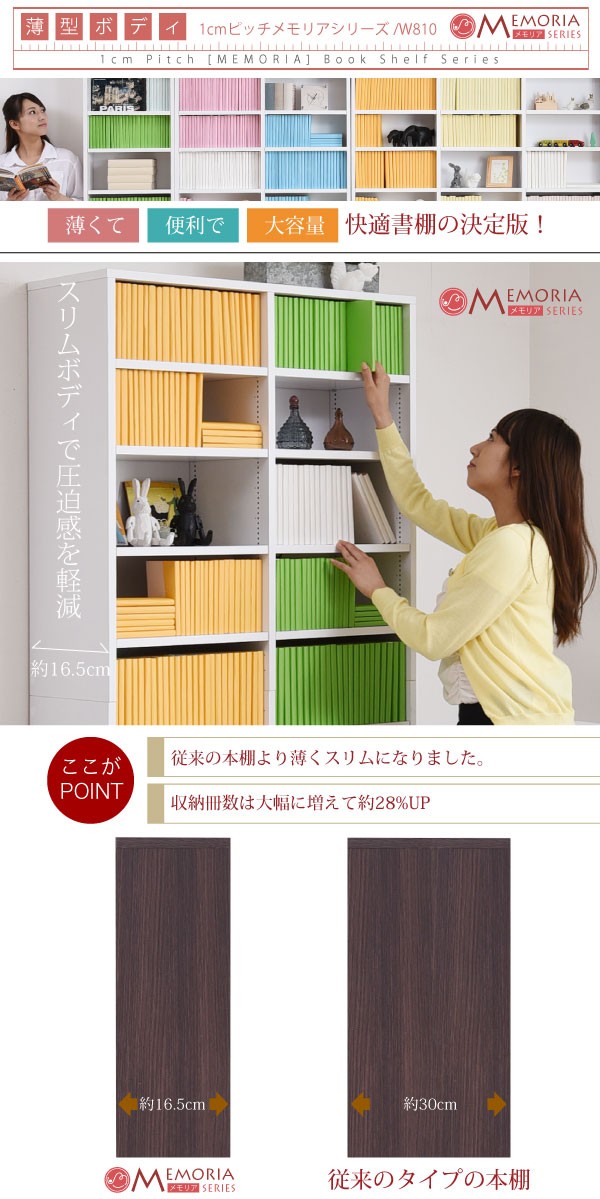 本棚 ワイド 薄型 可動棚 棚板調節 1cm単位 高さ変更 オープンラック 薄い コミック本 文庫本 おしゃれ ディスプレイ ラック コレクション 白 ホワイト 木目 茶