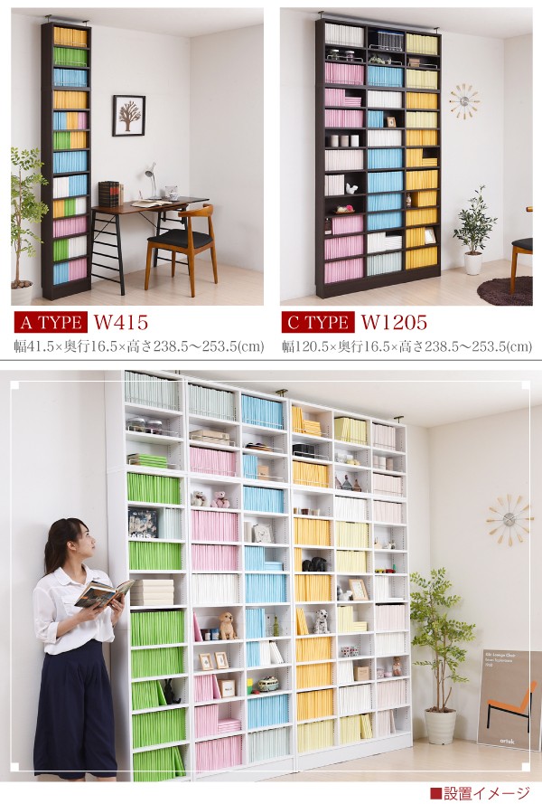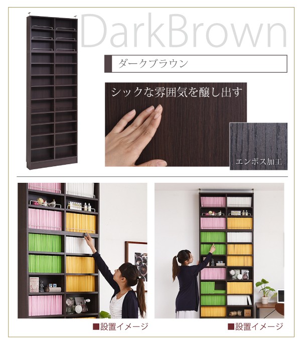 1cm単位 薄型 オープンラック 本棚 書棚 突っ張り つっぱり オープンシェルフ オープン棚 壁面収納本棚 つっぱり棚 突っ張り棚 つっぱり 壁面ラック 文庫本 cd dvd 漫画 コミック 収納 ブラウン 突っ張りラック つっぱりラック 白 1cmピッチラック