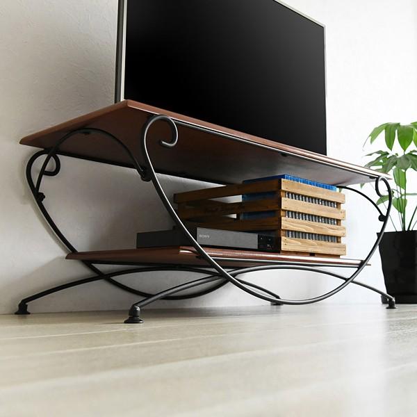 機能と装飾美を兼ね備えたアイアンのカーブと、しっかりした作りの天板で、コンパクトながらもあらゆるサイズのテレビ台が設置出来ます。