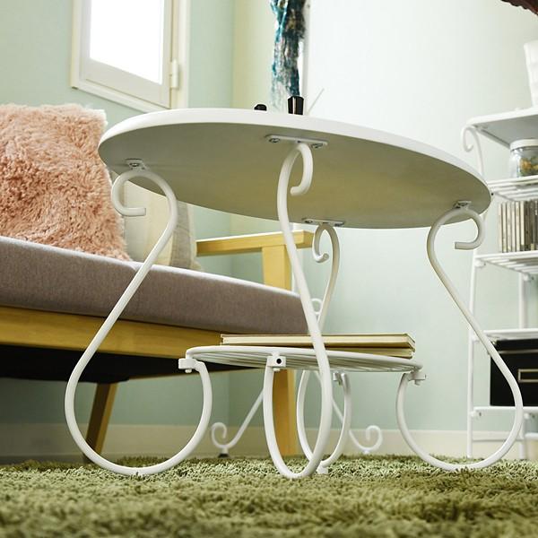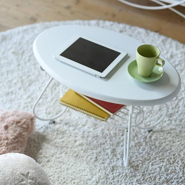 天板下にはラックが備えられており、雑誌やリモコンなどの日常使用するものの収納に最適です。