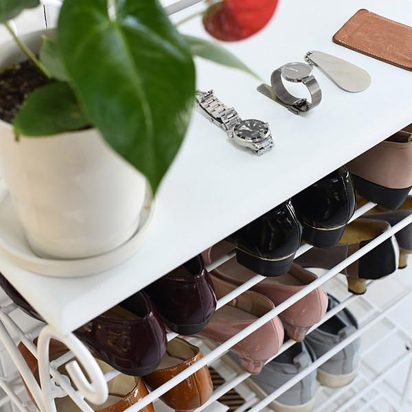 天板下には4段ラックが備えられており、扉付きのものと比べ通気性が良く、靴の種類などに使いわけて収納出来ますので、その日の服装に合わせて簡単にコーディネイト出来ます。