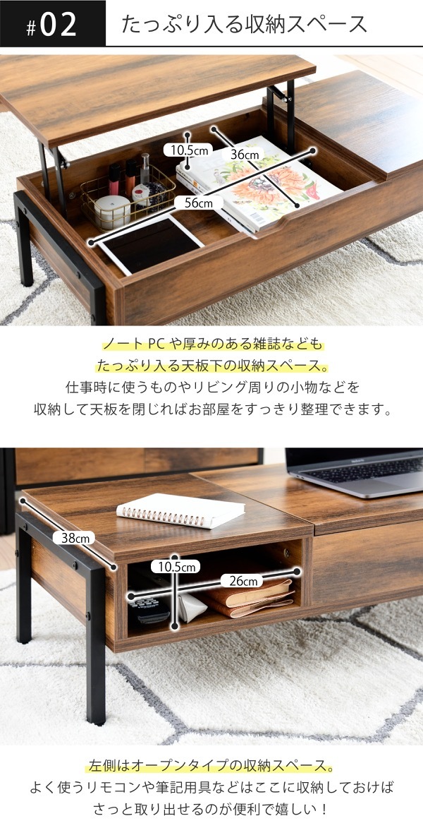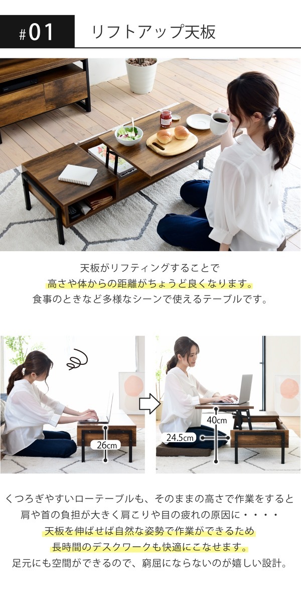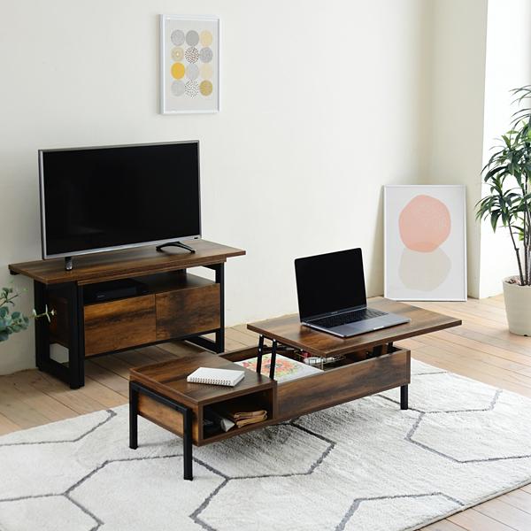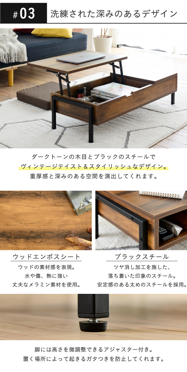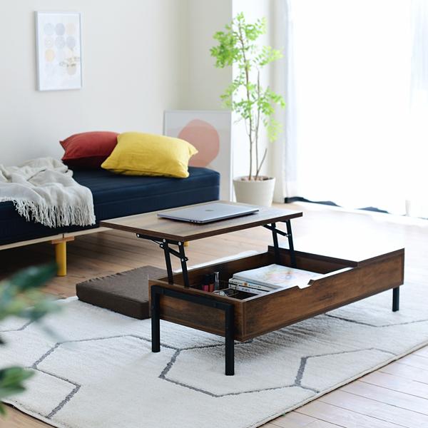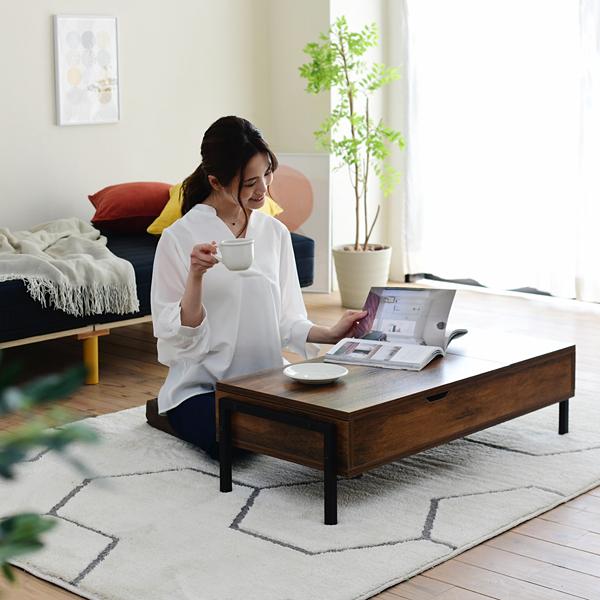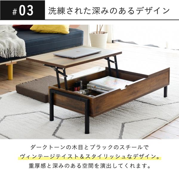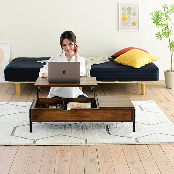 一人暮らし 収納 お洒落 油圧式 センターテーブル ローテーブル ビンテージ アンティーク 黒 作業台 昇降式 鉄脚 木製テーブル リビング ブラウン パソコン ヴィンテージ ウッド エクステンション ラック 木目調 テレワーク ダークブラウン pc 収納付き ブラック