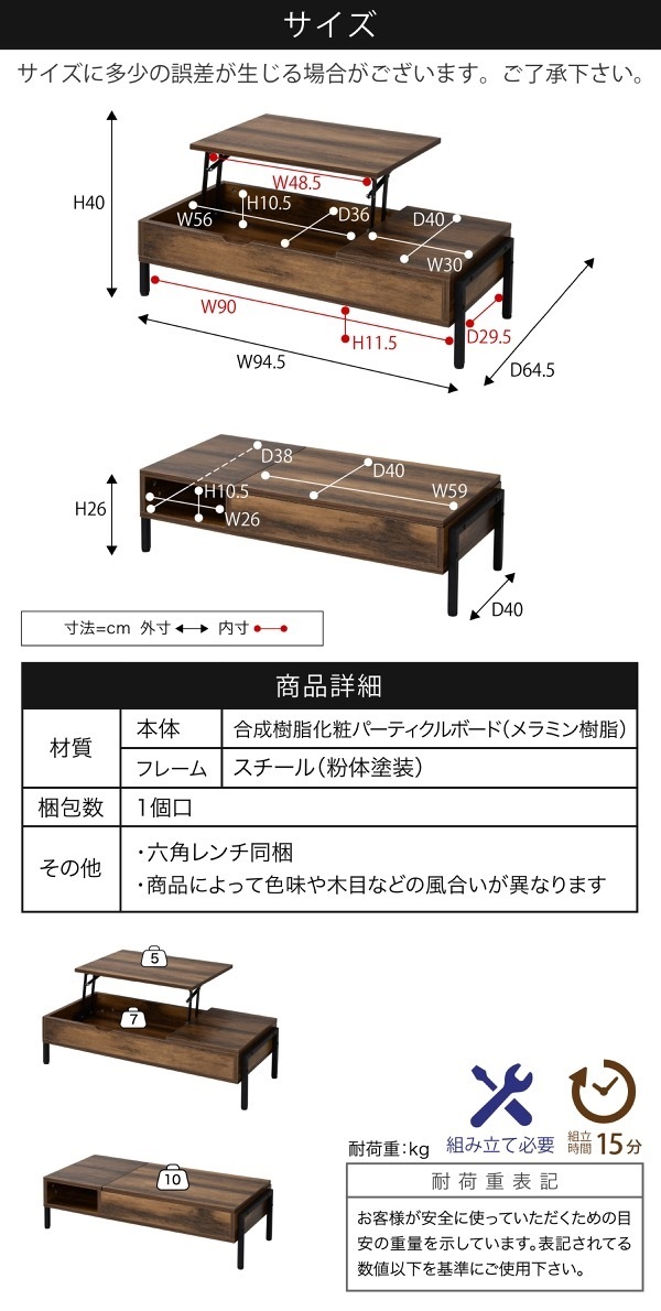 ・リフト開:幅94.5×奥行64.5×高さ40cm