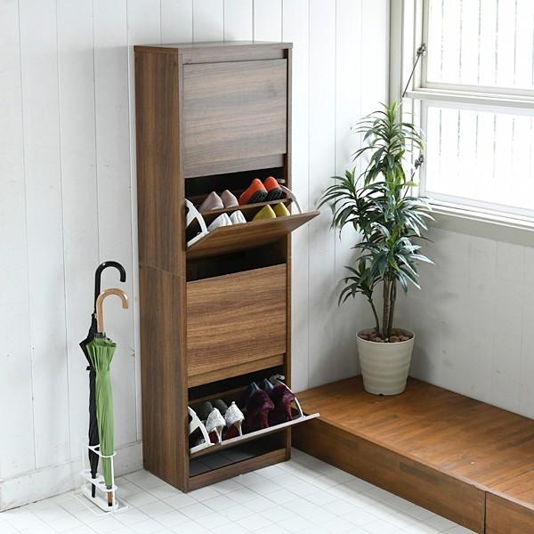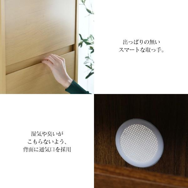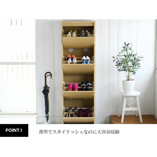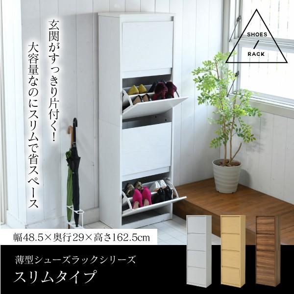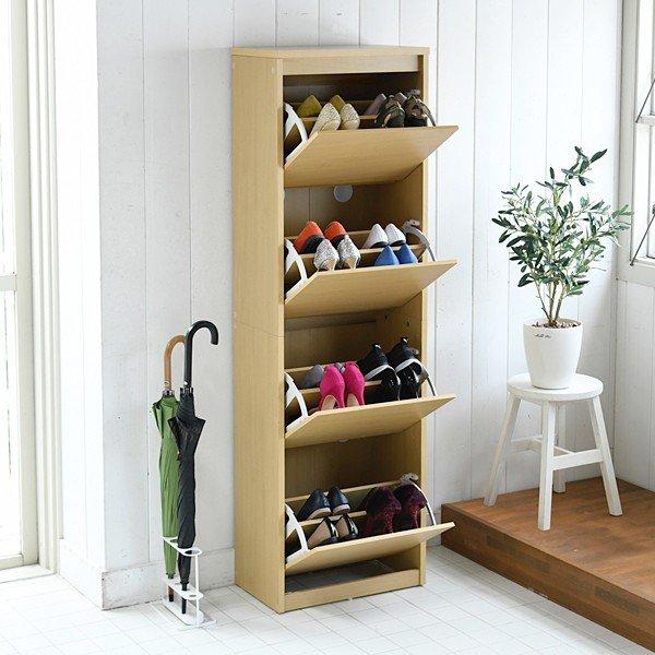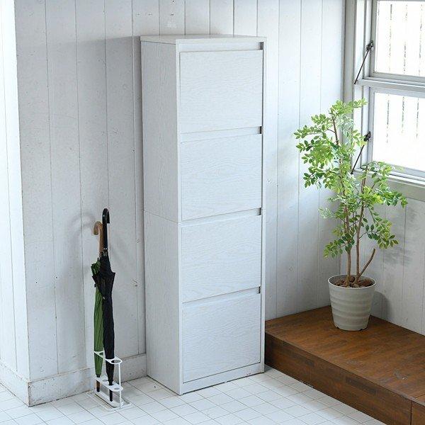 玄関の限られたスペースでも場所を取らない薄型設計のシューズボックスです。