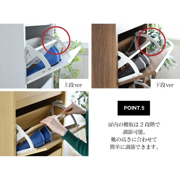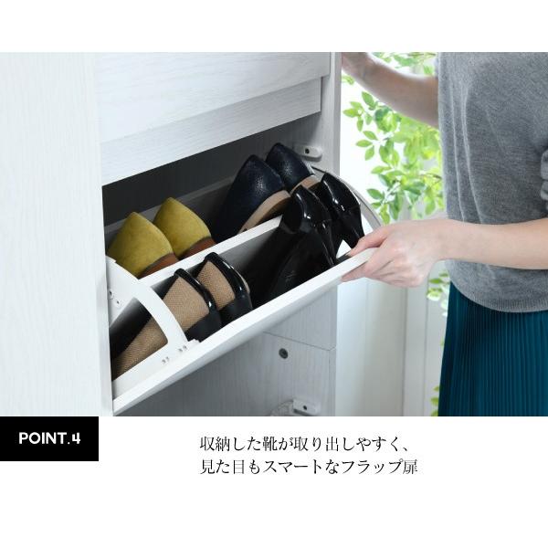 扉がフラップ仕様になっており、玄関にあふれた靴をすっきり収納できて見た目もスタイリッシュ!