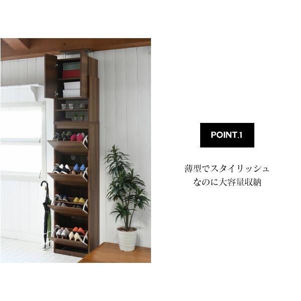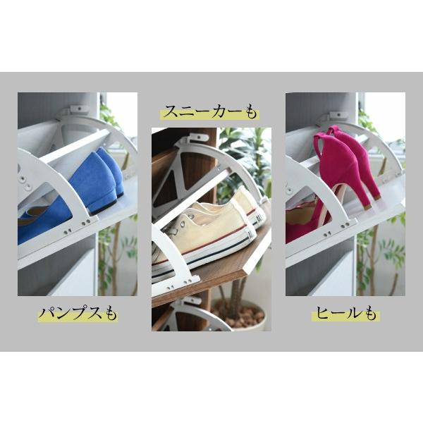扉がフラップ仕様になっており、玄関にあふれた靴をたっぷり収納できて見た目もスタイリッシュ!
