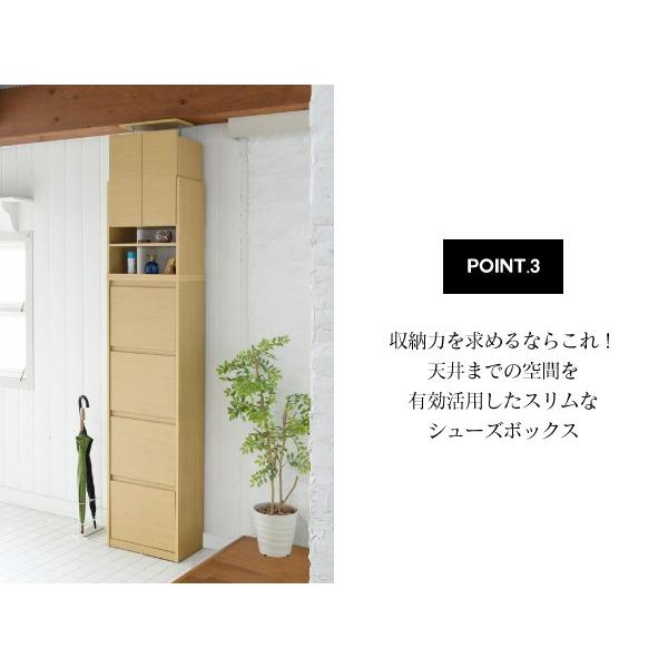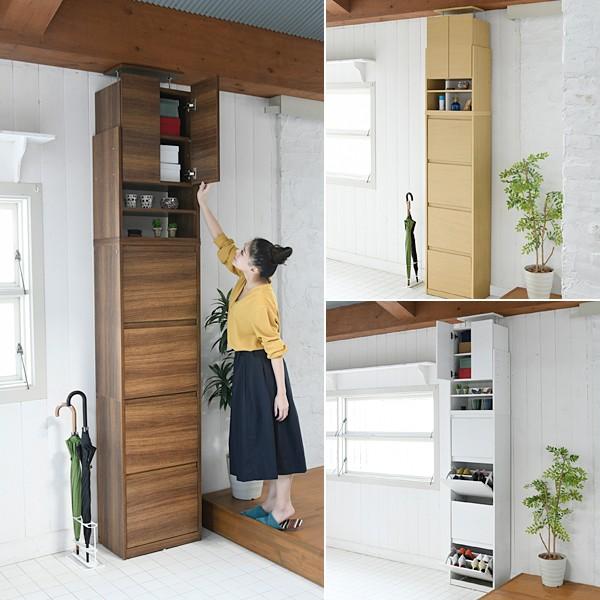 玄関の限られたスペースでも場所を取らない薄型設計のシューズボックスです。