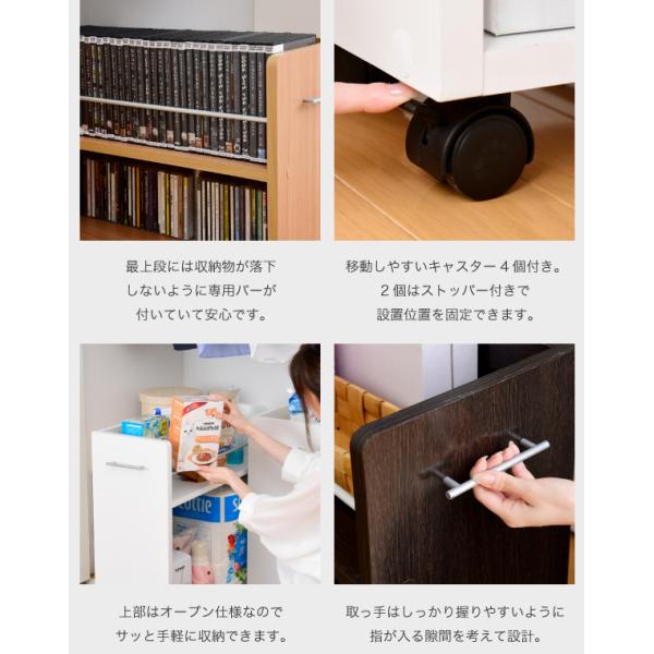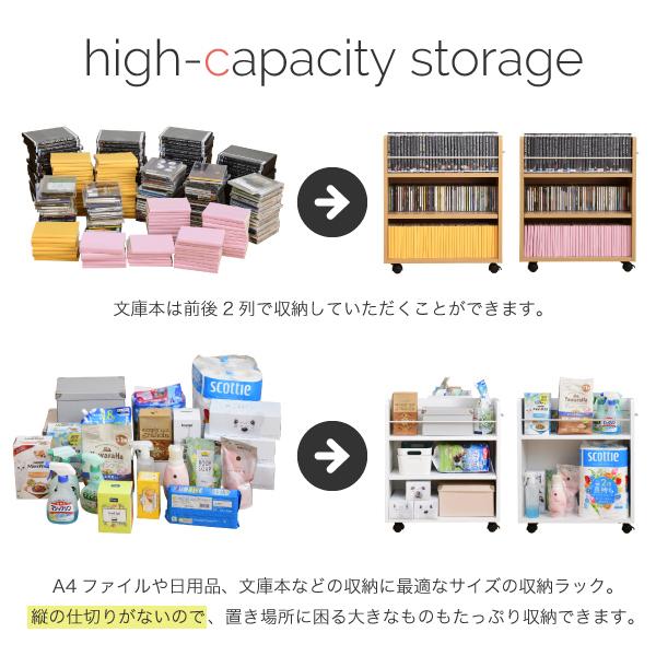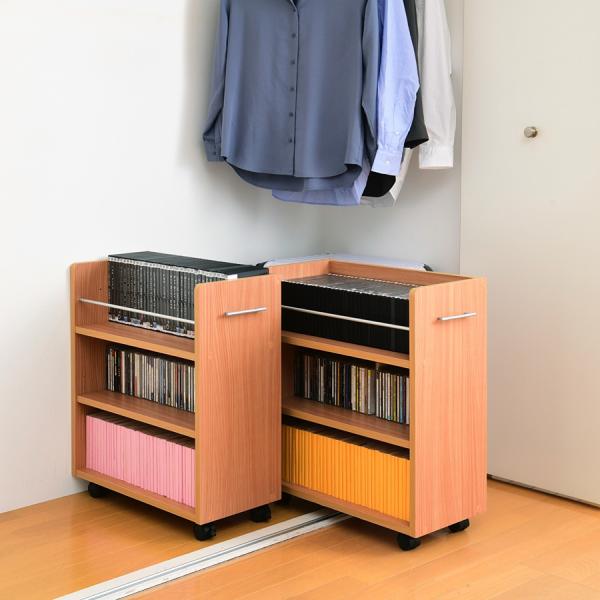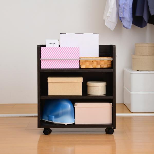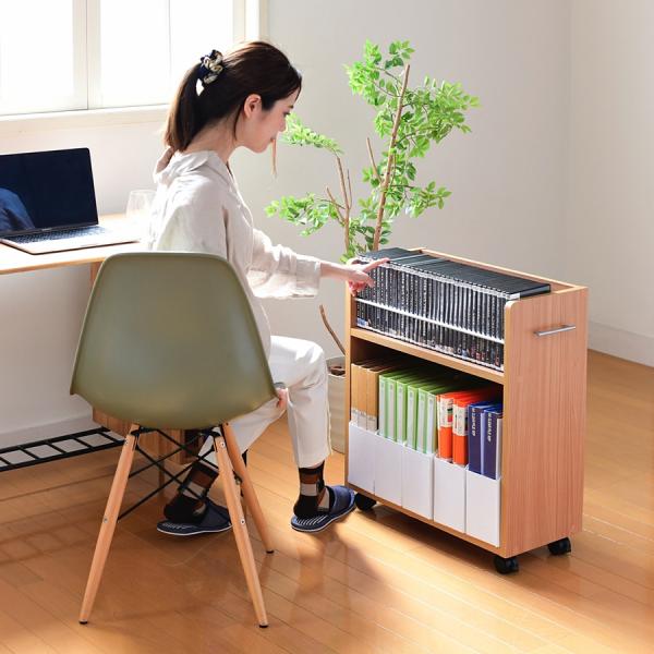 収納ラック 一人暮らし 省スペース 薄型 キャスター キャスター付 本 漫画 漫画本 マンガ CD DVD バッグ 箱 ランドセル 帽子 3段 木製 木 ホワイト 白 ナチュラル ダークブラウン シンプル