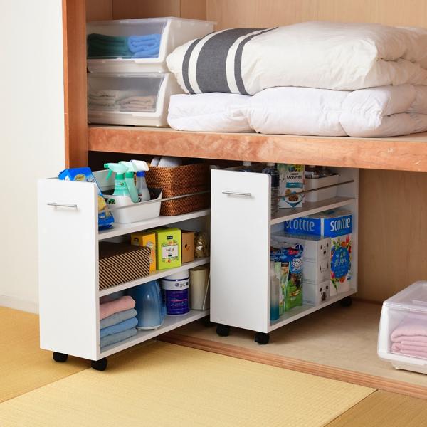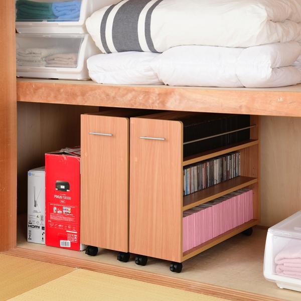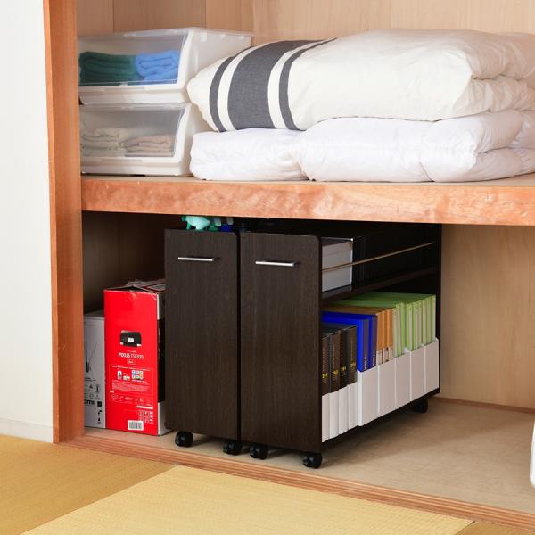 収納庫 押入れ収納 押入れ収納棚 可動式 キャスター 押し入れ 押入 A4ファイル 漫画本 コミック 雑誌 雑貨 学用品 おもちゃ かばん ランドセル リュック バッグ 日用品 一人暮らし 1人暮らし 薄型 木製 ホワイト 白 ナチュラル ダークブラウン シンプル
