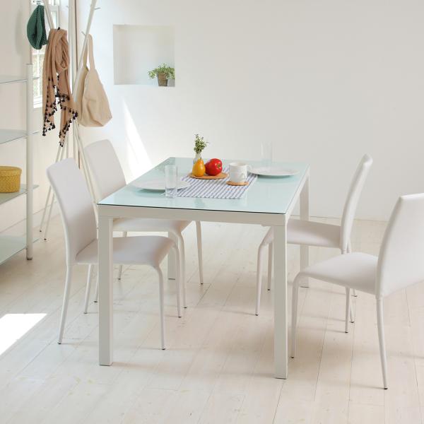 ダイニングテーブル 4人用 四人掛け 135×80cm ガラス天板 シンプル スタイリッシュ モダン おしゃれ 北欧 白 ホワイト 木目柄 黒 ブラック (テーブル以外別売) 【納期B】【lic-akg-007】