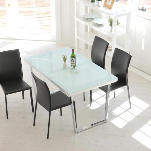 ダイニングテーブル 4人用 モダン おしゃれ 北欧 135×80cm ガラス 天板 シンプル スタイリッシュ スチール脚 白 ホワイト 黒 ブラック (テーブル以外別売) 【納期B】【lic-akg-010】