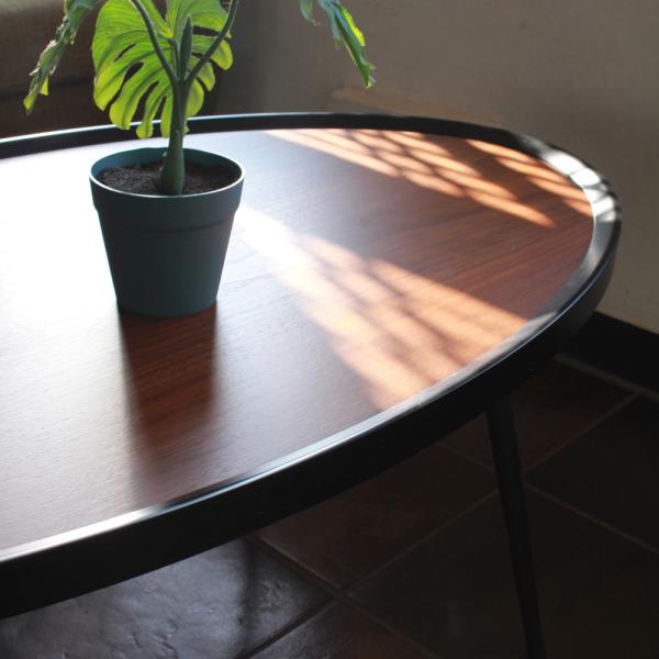 リビングテーブル センターテーブル ローテーブル 楕円形 丸型 おしゃれ モダン 北欧 スタイリッシュ 木目 天板 スチール脚 黒 ブラック 【納期B】【lic-akg-067】