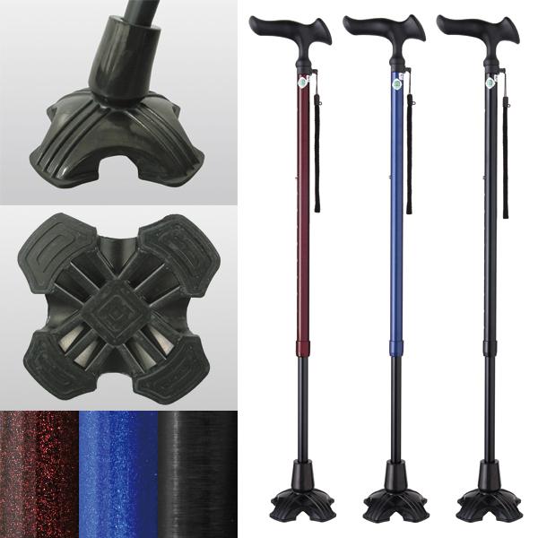 杖 ステッキ 伸縮 安定感 杖先 4点 支え 支点 赤 レッド 青 ブルー ブラック 黒 おしゃれ 介護 歩行 補助 敬老の日 介護用品 歩行サポート 【納期A】【lic-fjh-0015】