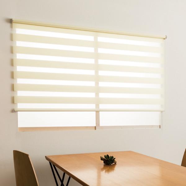 前後のスクリーン(生地)を重ねて彩光したり、外からの視線を遮ったり、自在にコントロールできる調光ロールスクリーンです。