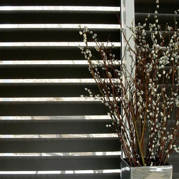 前後のスクリーン(生地)を重ねて彩光したり、外からの視線を遮ったり、自在にコントロールできる調光ロールスクリーンです。