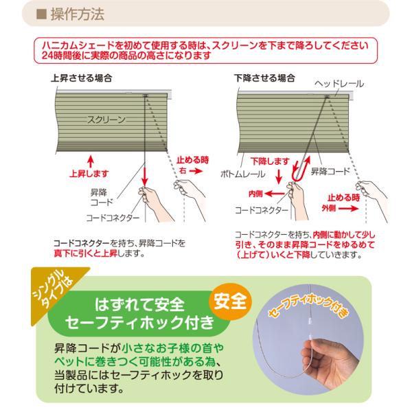 ・昇降コードの巻き付き事故を防ぐ安全ホック仕様
