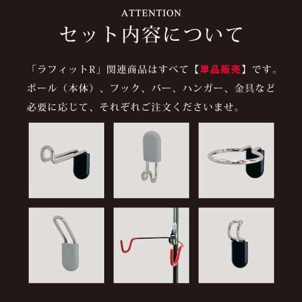 ポールを上下に突っ張るだけで簡単に固定できる「ラフィットR」専用の【フックL】です。