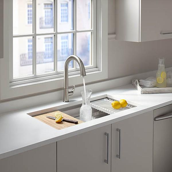 グースネックのキッチン用水栓は、モダンなキッチンを演出!