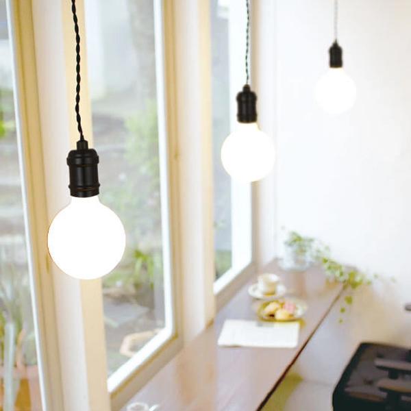 ・存在感のある大きめフォルムのLED電球とシンプルなソケットの組み合わせ