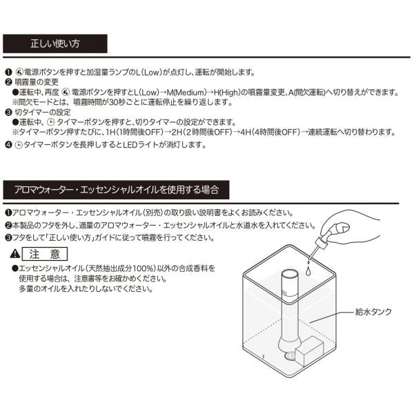 ・タンクの上からアロマオイル、アロマウォーターをそのまま垂らして使える超音波加湿器