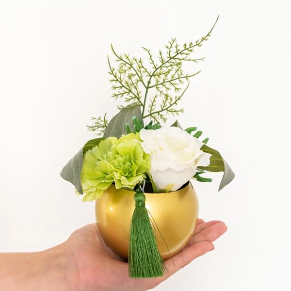 供花 造花 アレンジメント お供え 献花 仏花 お供え花 お悔み花 枯れない フェイクグリーン フェイクフラワー アーティフィシャルフラワー CT触媒 効果 半永久的 消臭 抗菌 防汚 お悔やみ 法事 仏具 仏壇 法要 枕花 お盆飾り 祭壇 命日 お彼岸 49日 四十九日 喪中 一周忌 ペット 犬 猫 ネコ イヌ 初盆 納骨堂 菊 キク カーネーション 桔梗 トルコキキョウ 金 ゴールド 銀 シルバー 鉢付き インテリア 飾り おしゃれ 装飾 省スペース コンパクト 手元供養