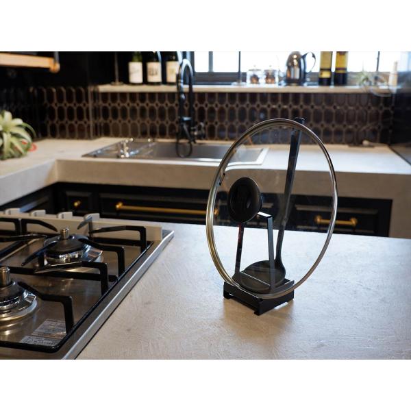 鍋蓋スタンド 鍋ブタ 鍋ぶた フタ お玉 キッチンツール 収納 ラック 菜箸 スパチュラ 真名板 まな板置き シンプル スタイリッシュ キッチン 台所 収納 【納期B】【lic-nit-0034】