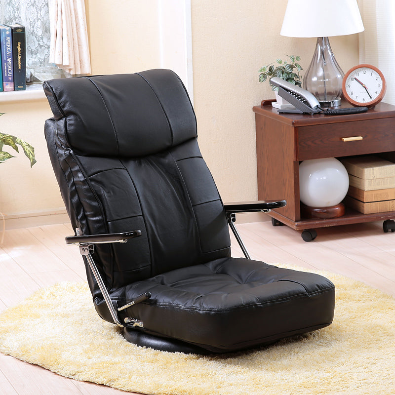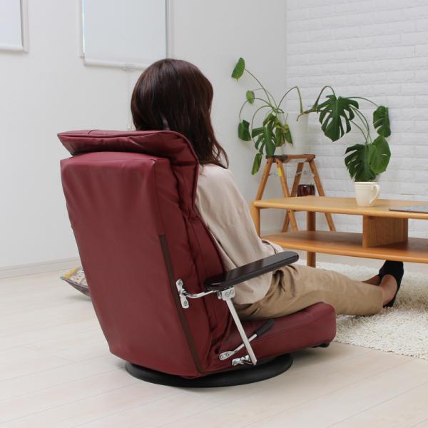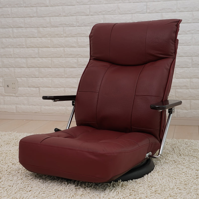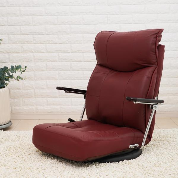 座椅子 回転 回転式 リクライニング チェア ハイバック 肘掛付き ひじ掛け 跳ね上げ 高級感 革 レザー 黒 ブラック レッド 赤 フロアチェア ヘッドレスト 【納期D】【lic-tan-199】