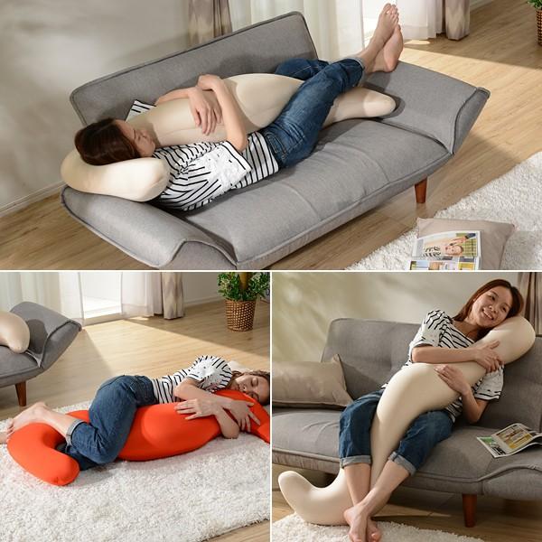 妊婦さんは腰への負担が大きく寝付けないときなど、このマクラを脚で挟んで横向きで寝ると楽になる場合があります。