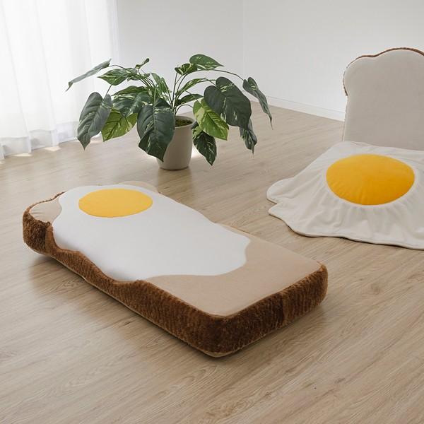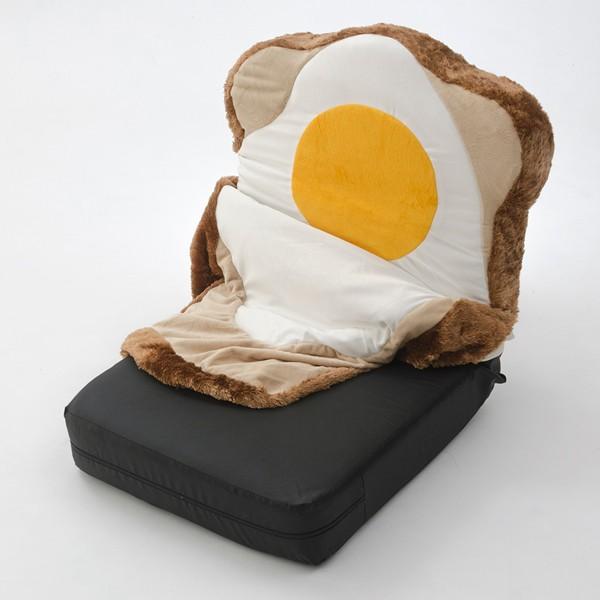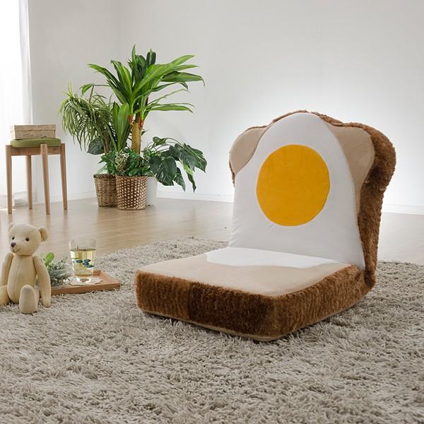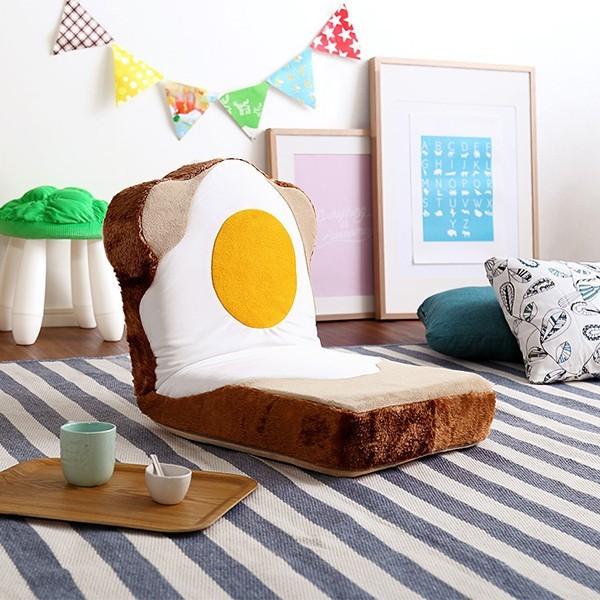 目玉焼きが愛らしい食パンデザインの日本製座椅子です。