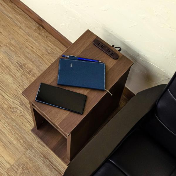 雑誌や小物が置け、コンセント付きでスマホやタブレットの充電も出来ます。