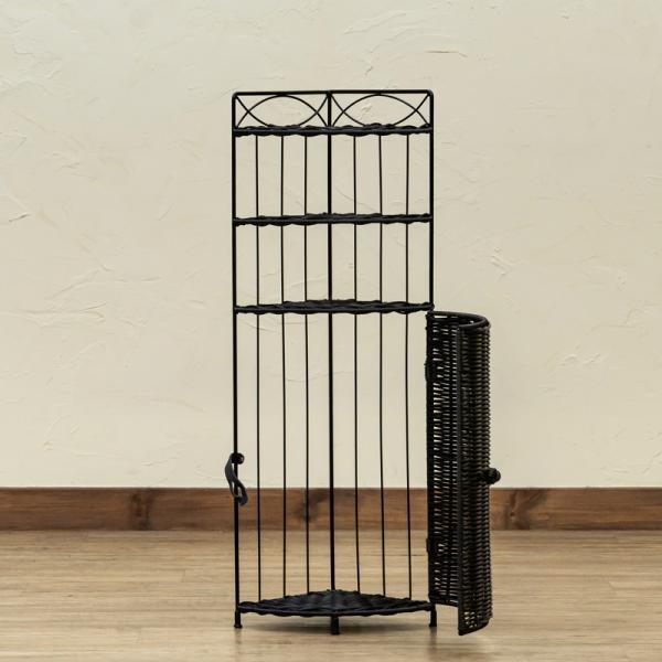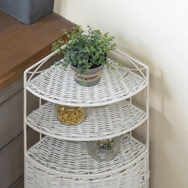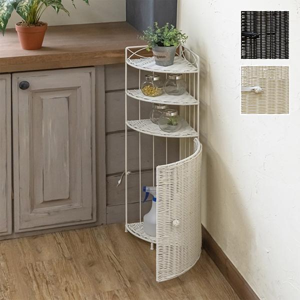 コーナーラック 3段 収納棚 壁寄せ 玄関 トイレ リビング ダイニング 収納ラック 扉付き 目隠し 白 ホワイト ダークブラウン アジアン おしゃれ リゾート ラタン