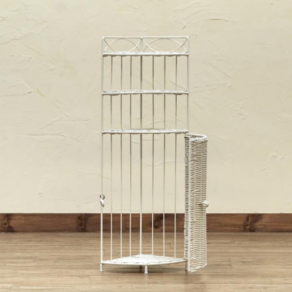 コーナーラック 3段 収納棚 壁寄せ 玄関 トイレ リビング ダイニング 収納ラック 扉付き 目隠し 白 ホワイト ダークブラウン アジアン おしゃれ リゾート ラタン 【納期B】【skb-tme79】