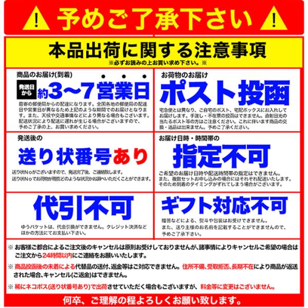 ※ポスト投函配送の為、手渡しや不在票投函はしておりません。